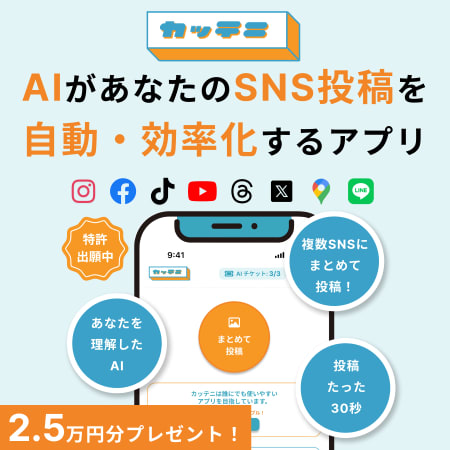 【約2.5万分プレゼント🎁】SNS投稿が劇的にラクになる神アプリ『カッテニ』先行モニター大募集! 2026年04月03日