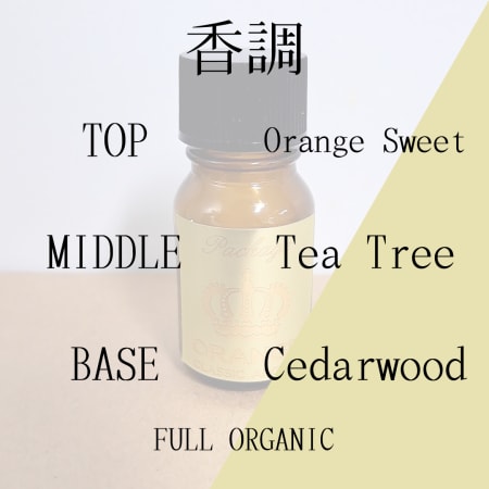 オレンジの爽やかさをティートゥリーとシダーウッドの優しい甘さで包むブレンドです。