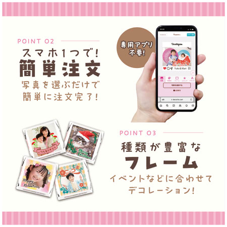 好きな画像がチョコになるというサービスの特徴や、出来上がったオリジナルチョコの可愛さや感動を伝えていただける方を募集します。