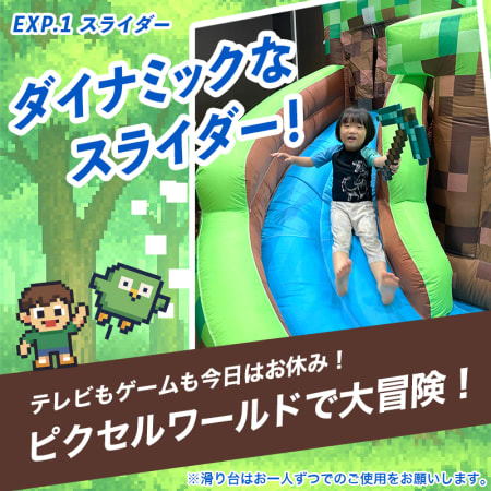 ピクセル (2Dドット) デザインの すべり台付きエアー遊具 !