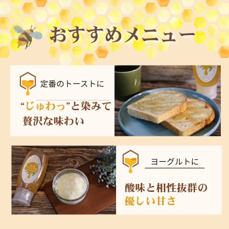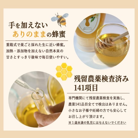 非加熱・無添加で手を加えないありのままのはちみつで、固まりにくく使いやすいのも特徴です。