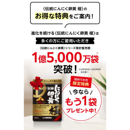 「伝統にんにく卵黄極」は、30年以上愛され続け、シリーズ累計1億5千万袋を突破した人気サプリ。九州産の有機にんにくと有精卵黄という、昔ながらの元気食材を独自の製法でぎゅっと凝縮した伝統にんにく卵黄。さらに、リラックス成分として注目のGABAをプラス。疲労感やストレス※1を和らげる※2機能性表示食品としてパワーアップ※3しました。