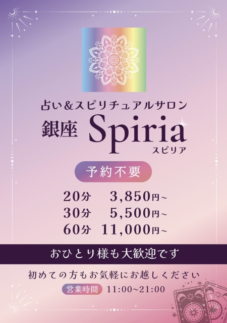 銀座スピリアは、スピリチュアル・チャネリング・カードリーディングを中心に、“心のメンテナンス”と“本来の輝き”を引き出すプライベートサロンです。